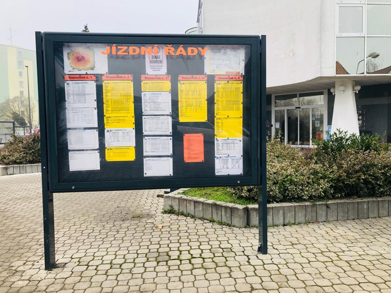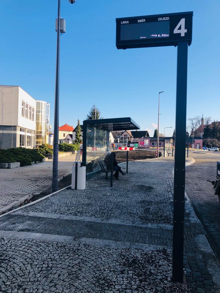 Nově jsou na autobusových stanovištích „Zastávkové odjezdové panely“.