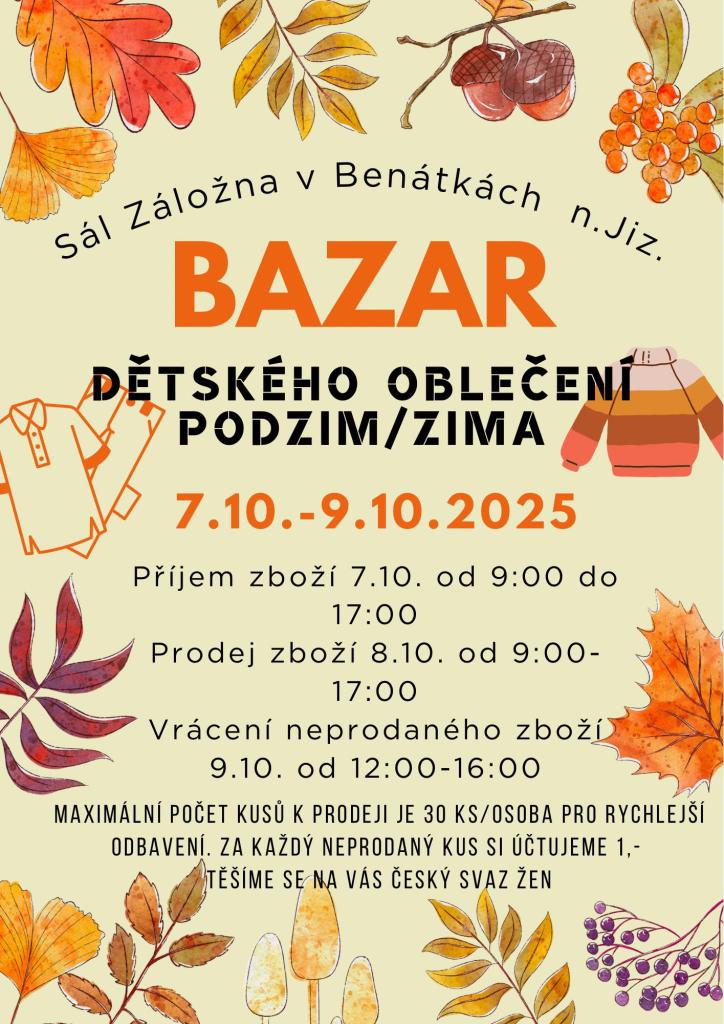 7.10. příjem 9-17 8.10. prodej 9-17 9.10. vrácení 12-16