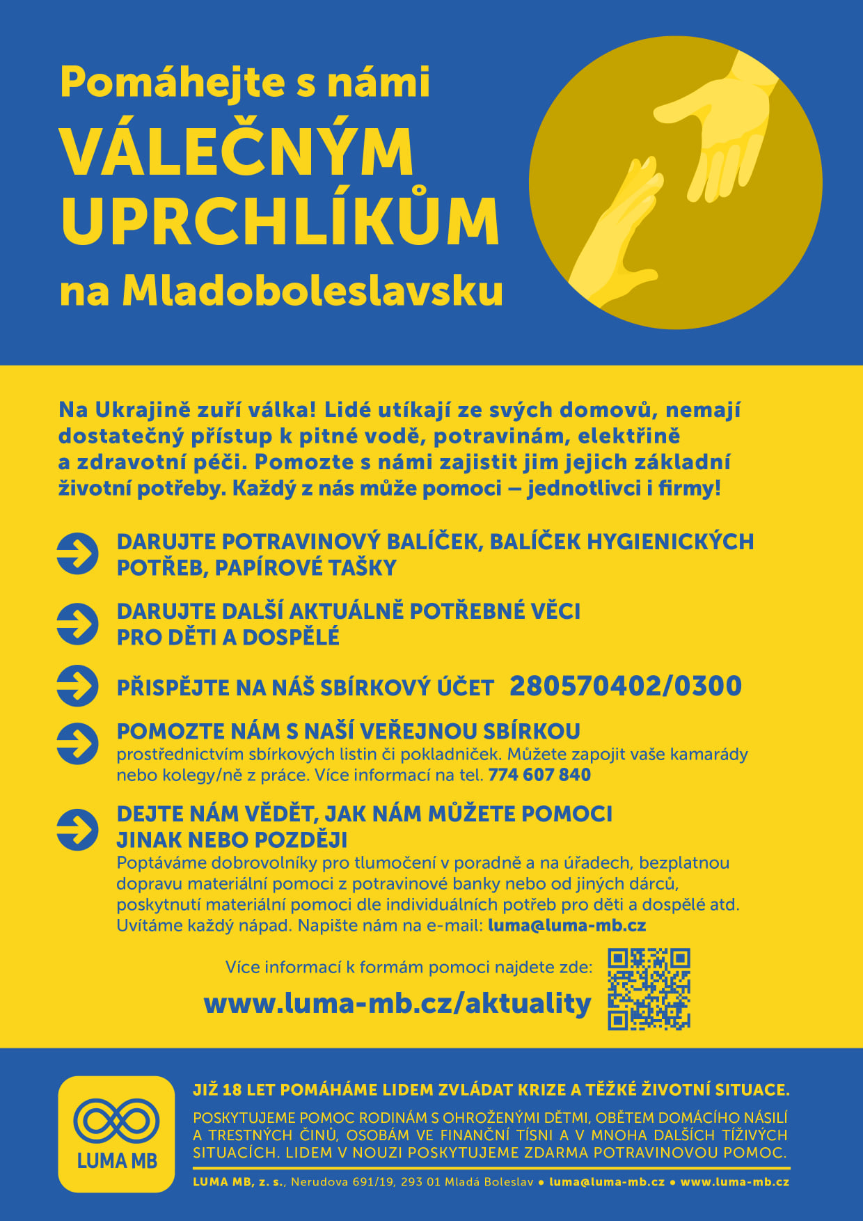 Využijte charitativní sbírky, poskytněte prostor uprchlíkům.Válka je hned vedle a otřese i naším světem. Držme se a pomáhejme!