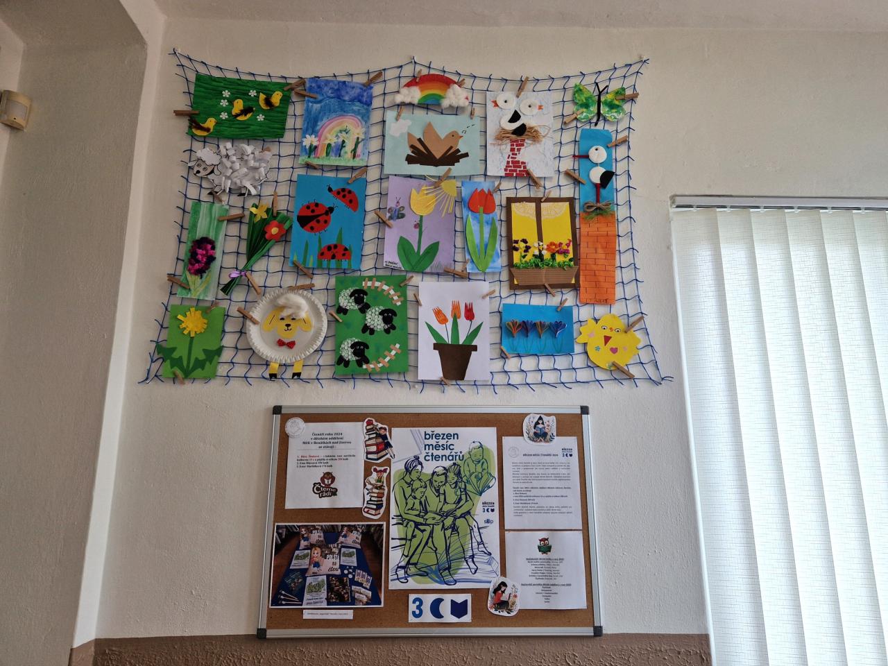 Na chodbě knihovny máme novou jarní výzdobu! Velmi tímto děkujeme šikovným malým výtvarníkům ze ZŠ Horní a Dolní Slivno, ZŠ Pražská Benátky nad Jizerou a benáteckým MŠ!