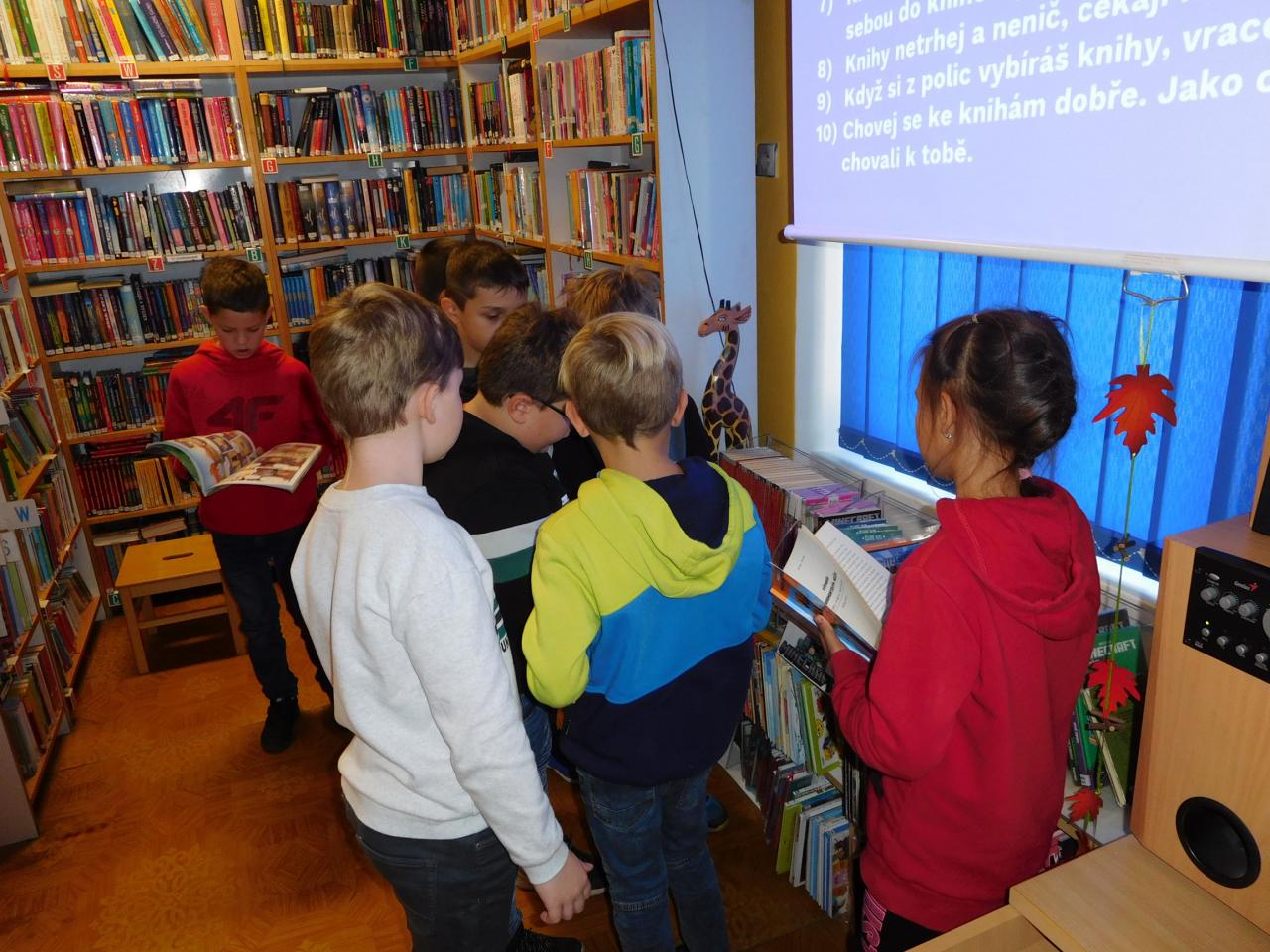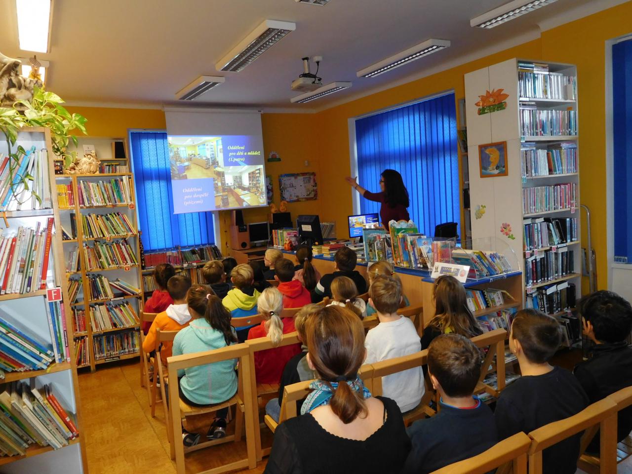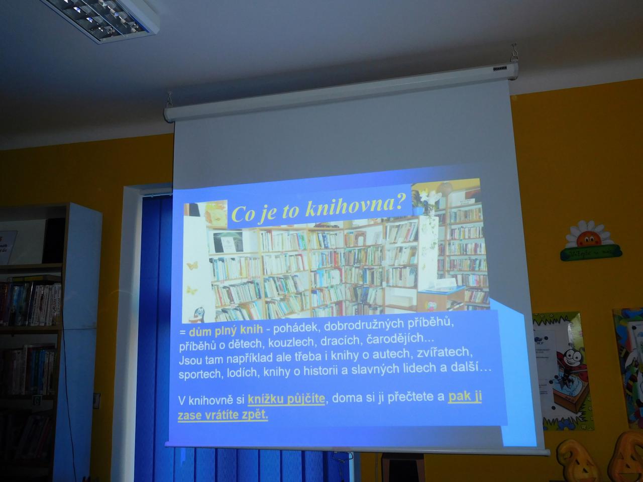 Seznámení s prostředím knihovny a jejím provozem, s nabídkou knížek, zejména potom literatury pro čtenáře daného věku. Ukázky, prezentace...
