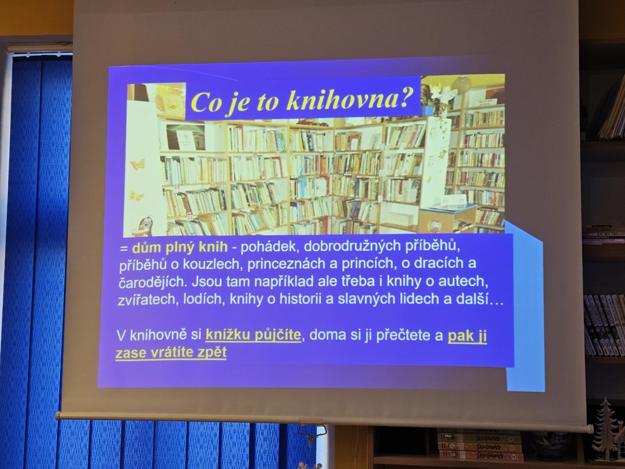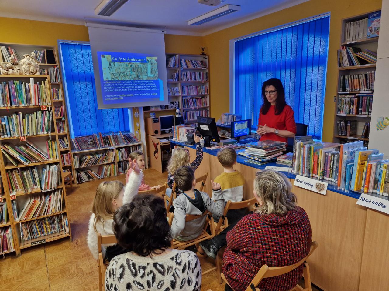Seznámení s prostředím knihovny, nabídkou knížek, ukázky, prezentace...
