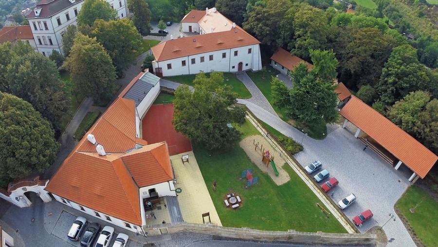 Mezi Plajchem a děkanským kostelem na pozemcích patřících k panství byla zahrada se skleníkem. Ta se nezachovala. Když v roce 1920 město zakoupilo od hraběte Kinského zámek, darovalo pozemek tělocvičné jednotě Sokol na letní cvičiště. Nyní, po rekonstrukci v roce 2005 slouží škole jako sportovní hřiště.
