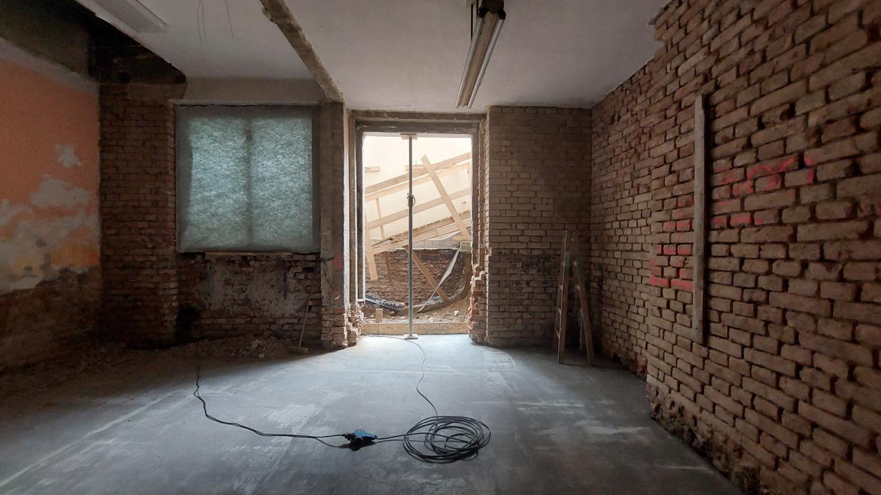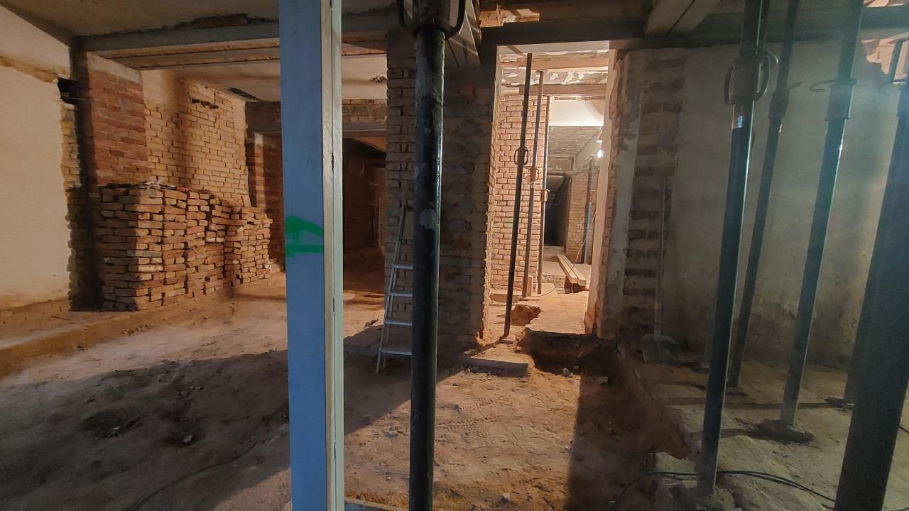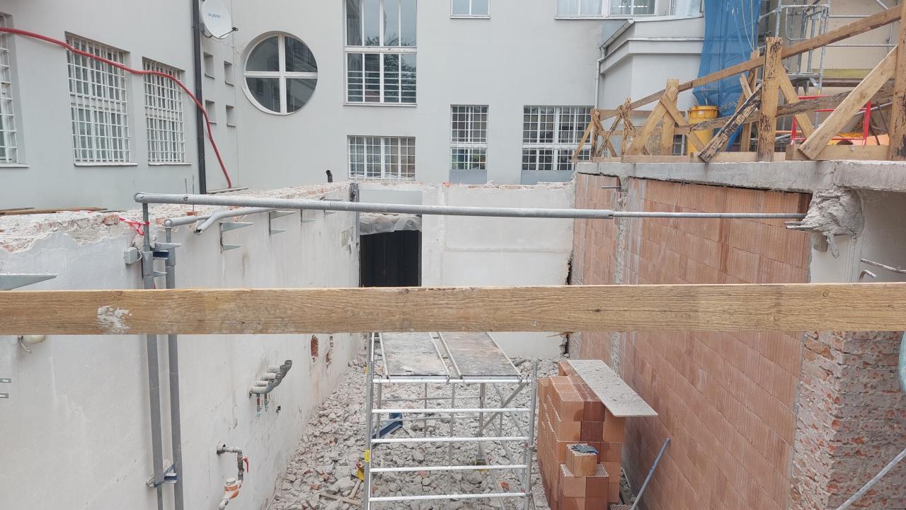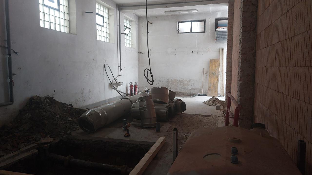 Sanace sklepních prostorů objektu, jídelna pro ZŠ, nová dispozice a technologie kotelny.