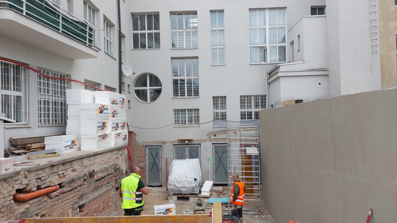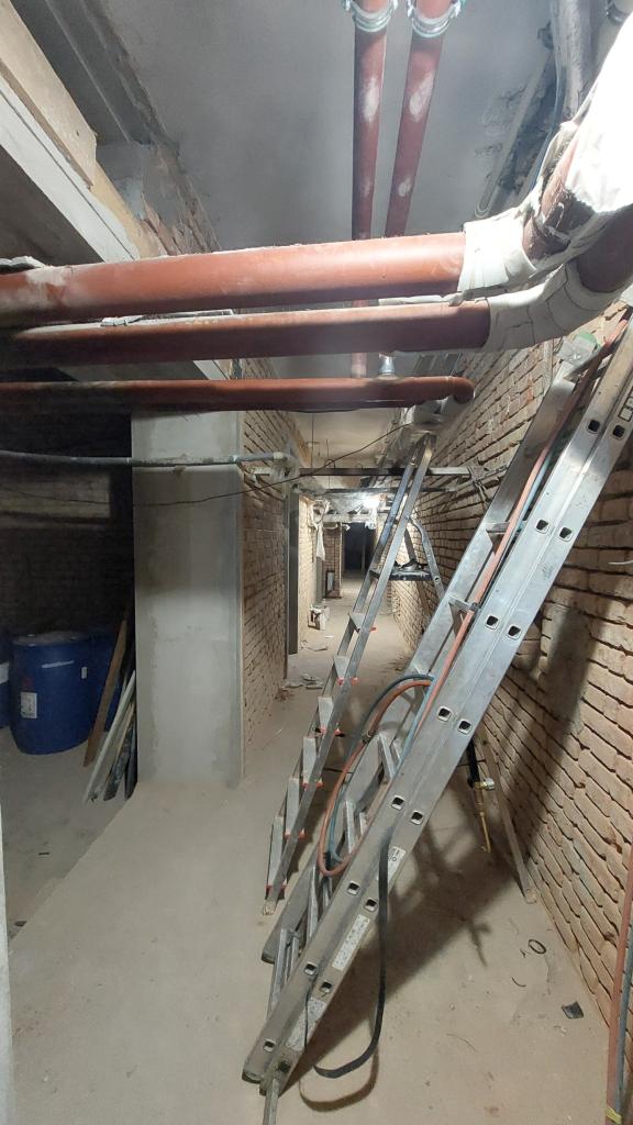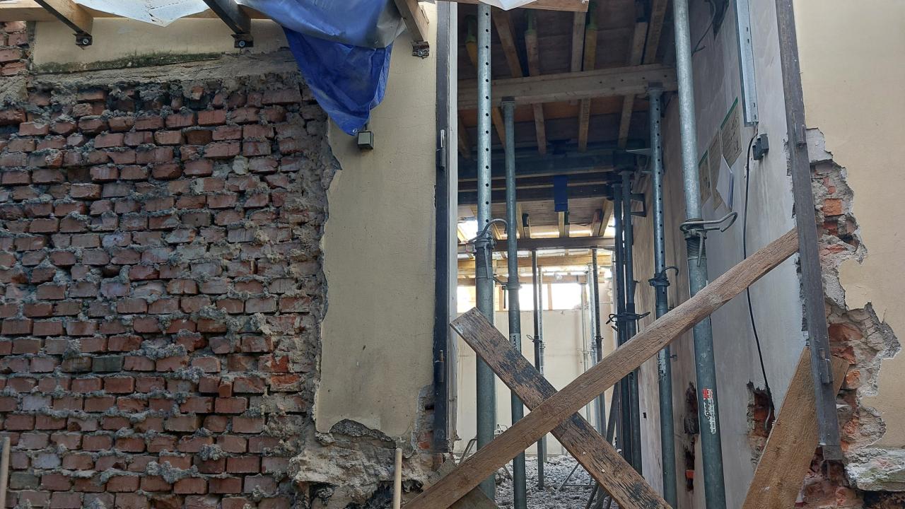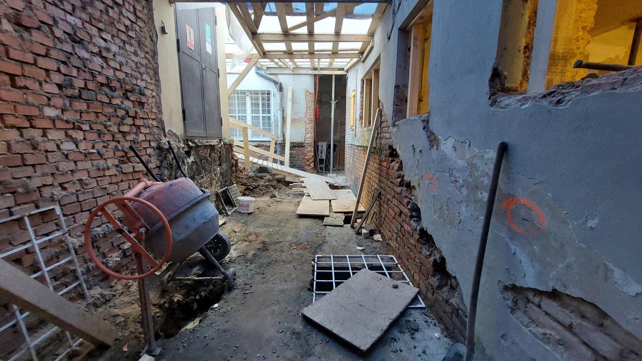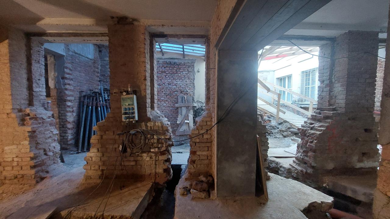 Sanace sklepních prostorů objektu, jídelna pro ZŠ, nová dispozice a technologie kotelny.