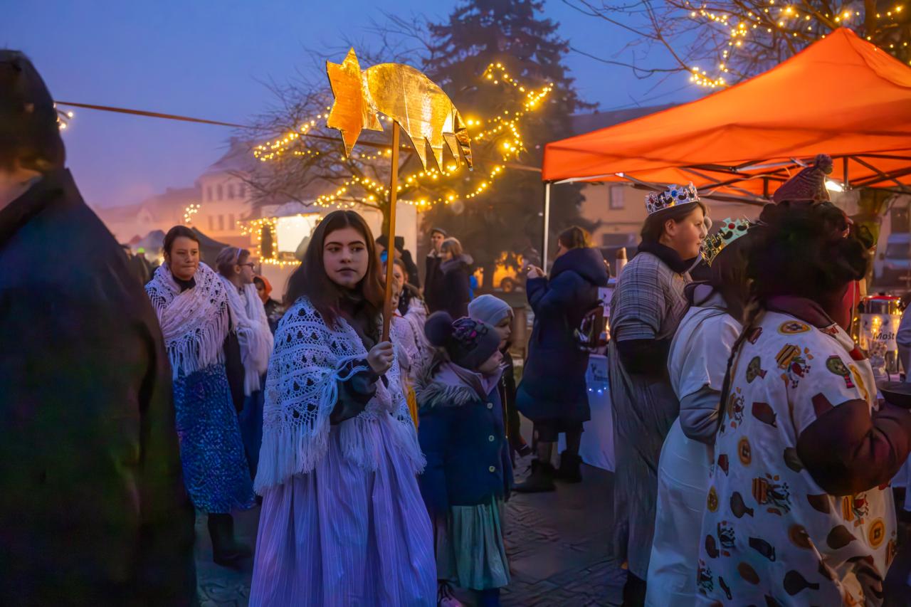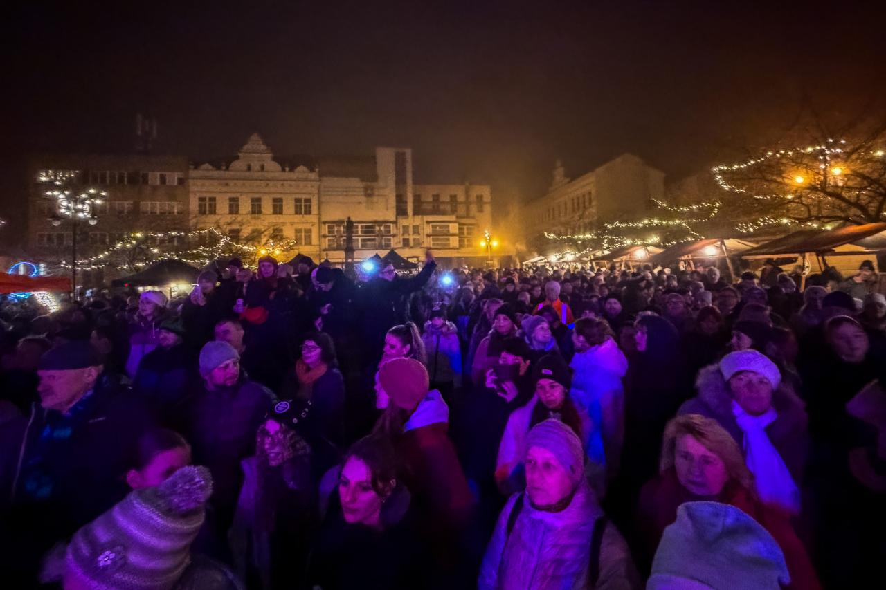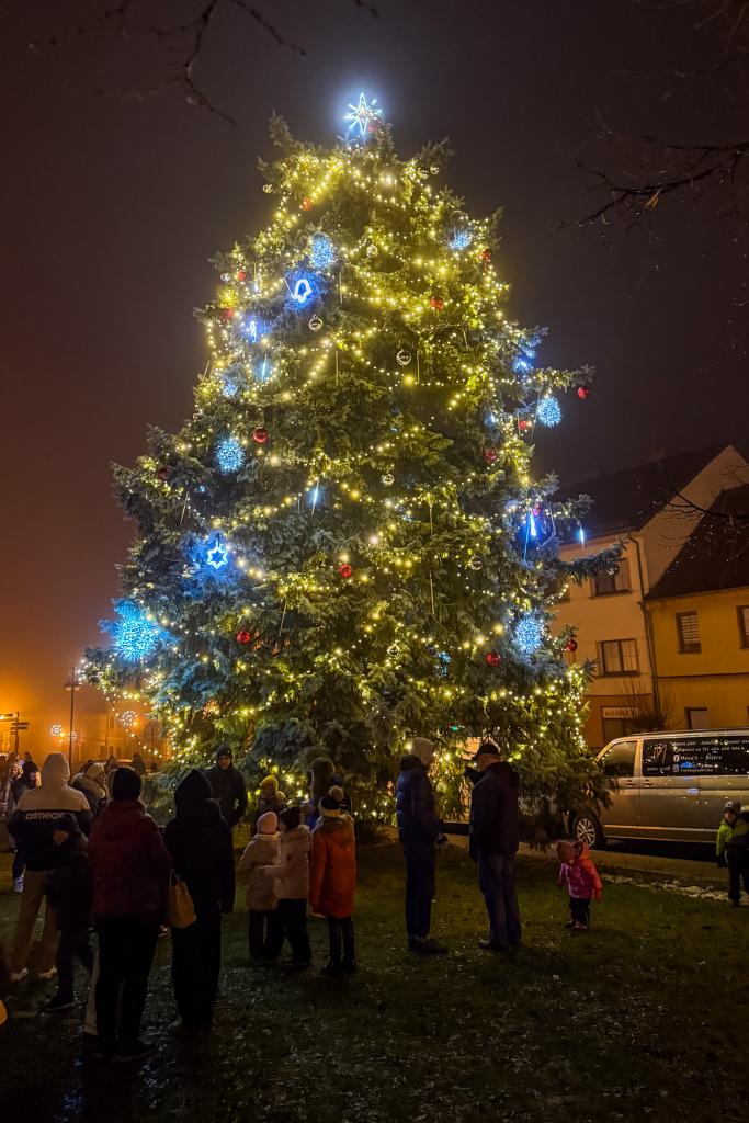 V sobotu se rozsvítily stromky Na Burse, v Dražicích a ve Kbele. V neděli v 18 hodin se rozzářil i strom na Husově náměstí.