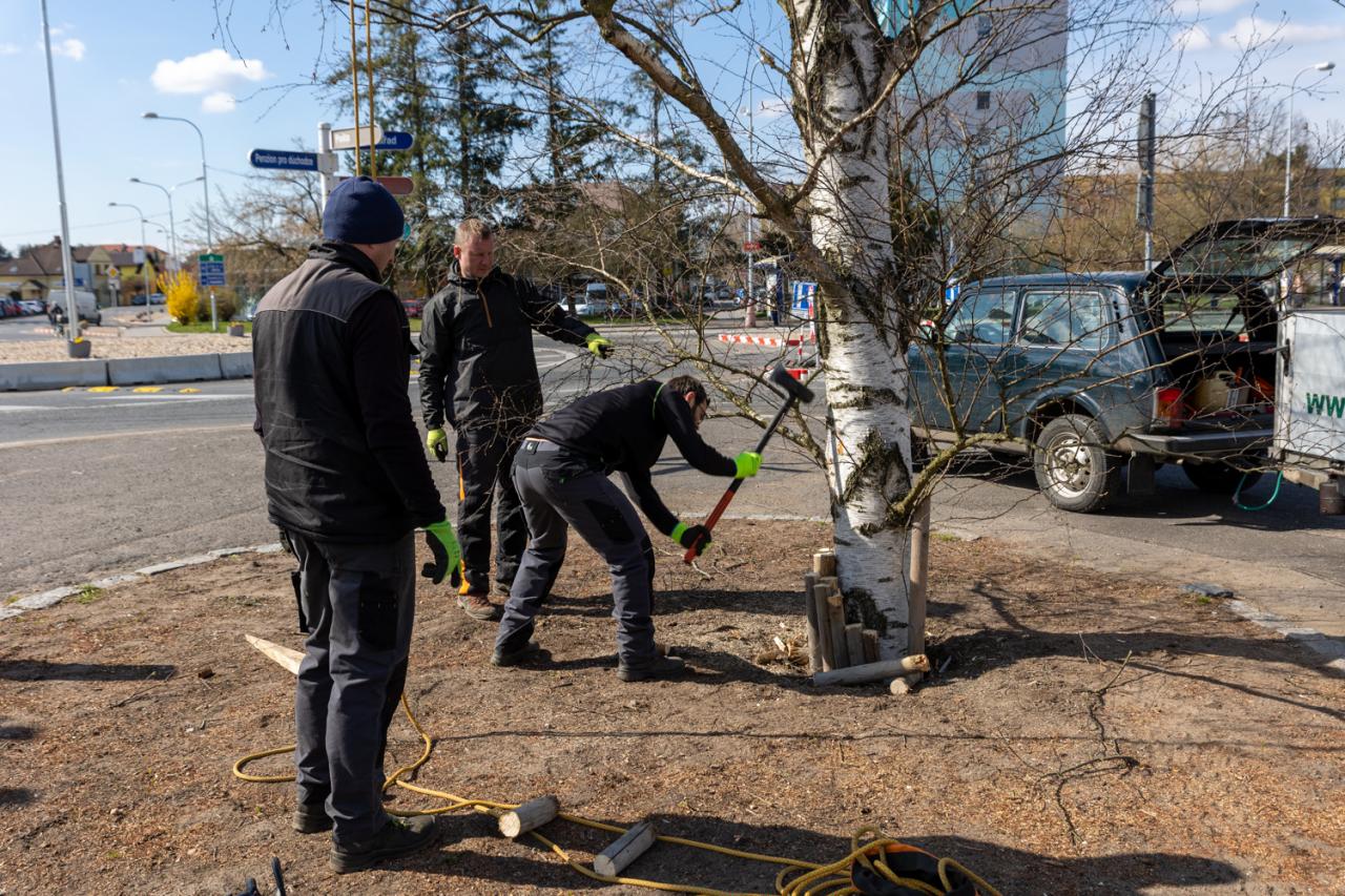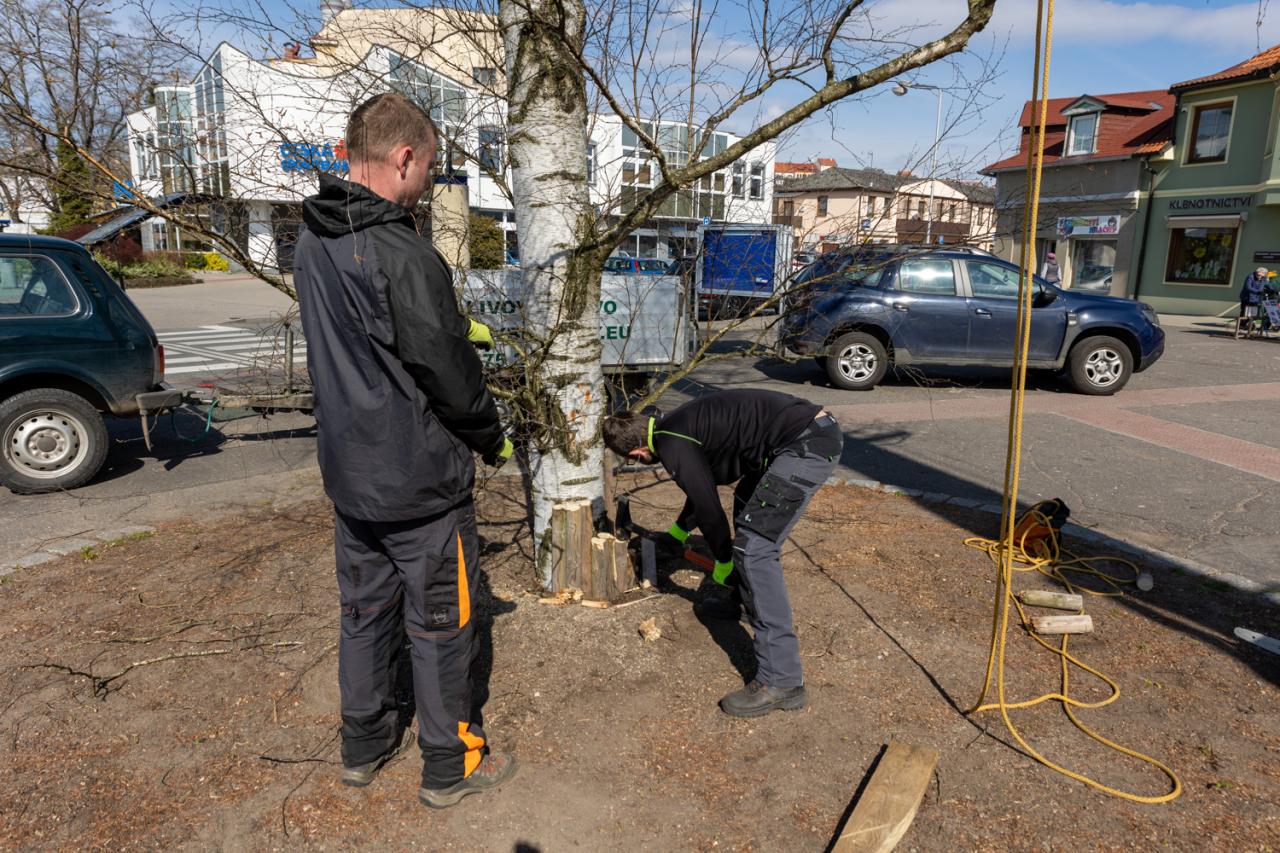 Kácení a instalace velikonoční břízy