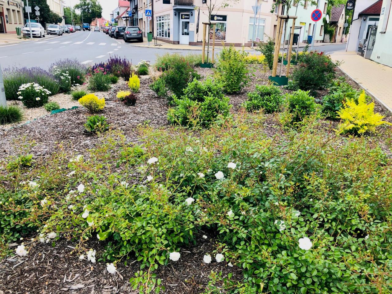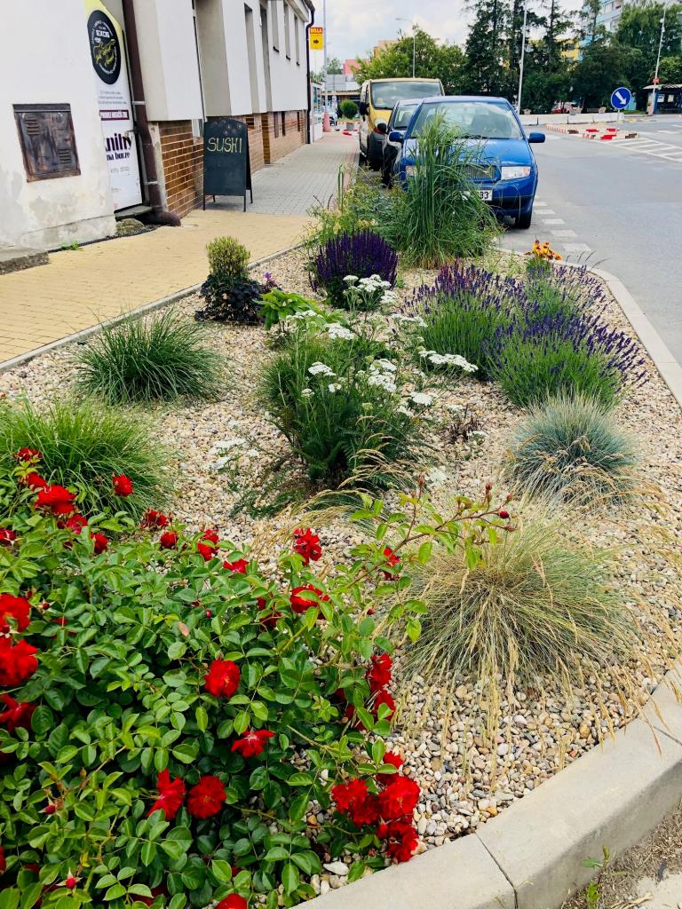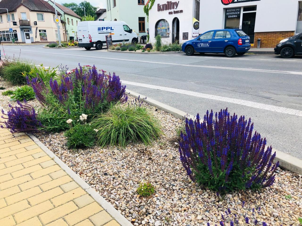 Květinové záhony v ulici Pražská
