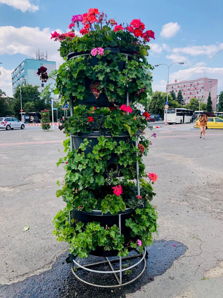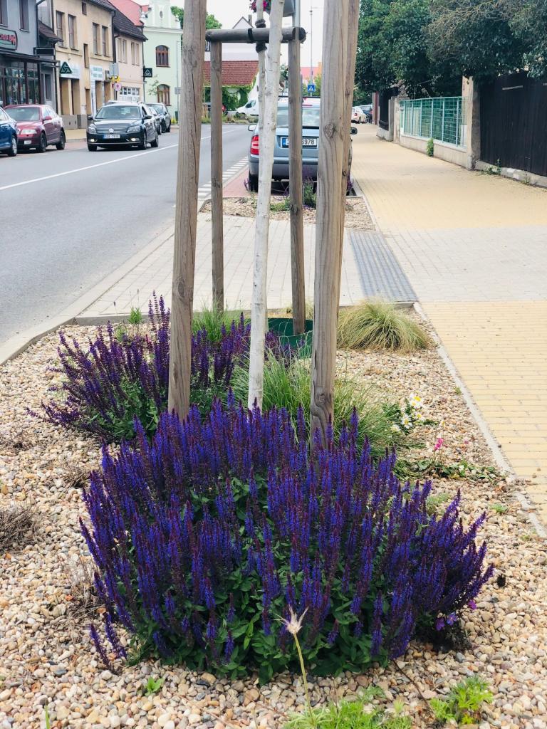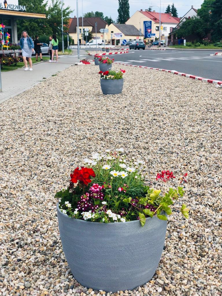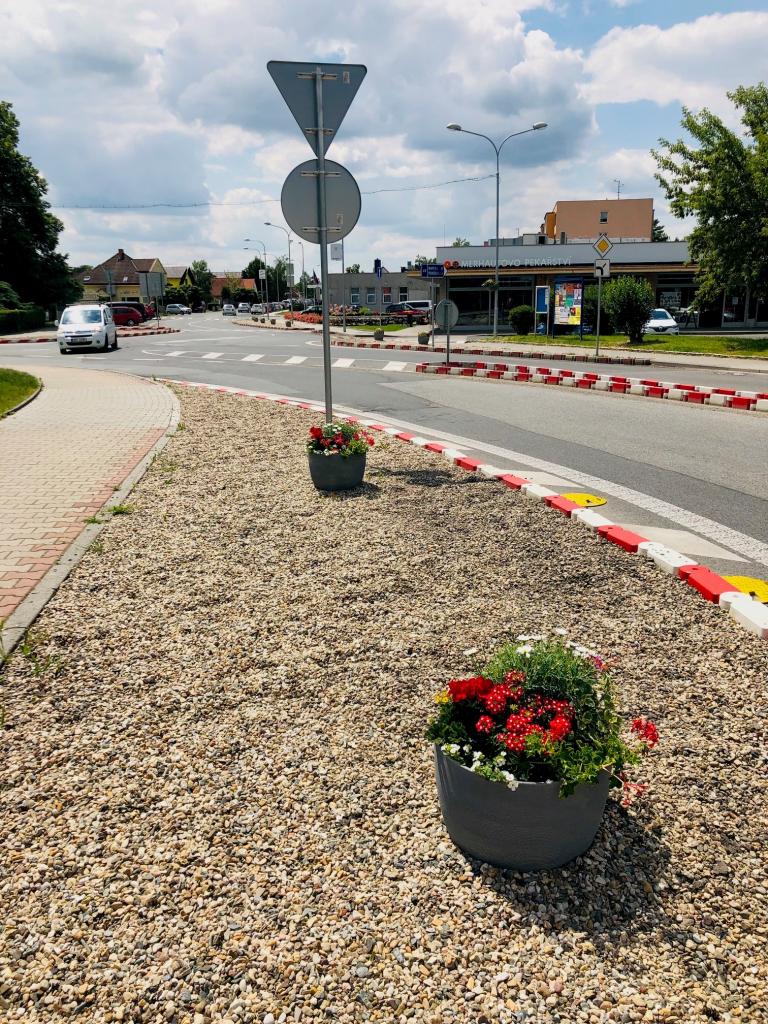 Květinové záhony v ulici Pražská