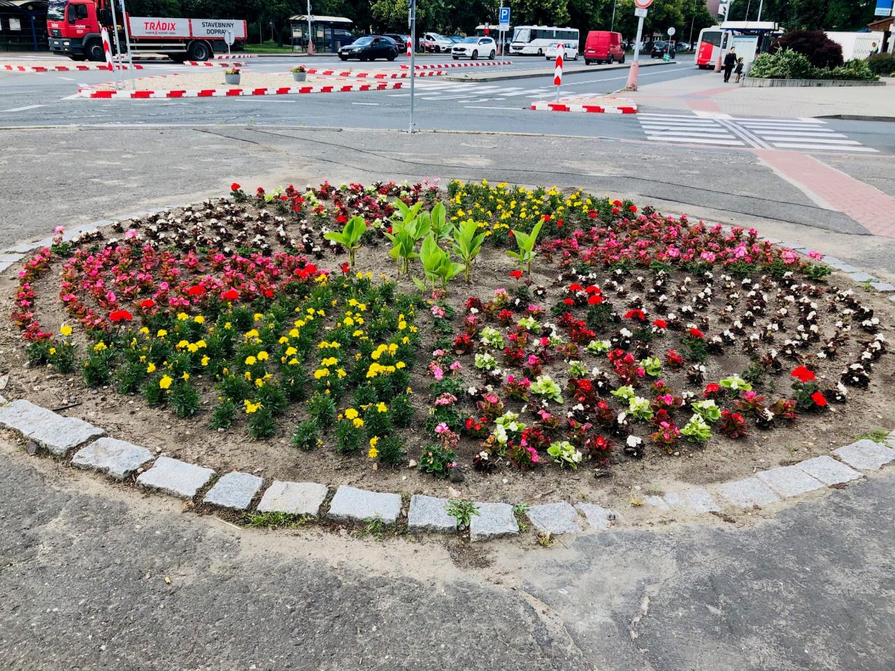 Květinový záhon v ulici Pražská
