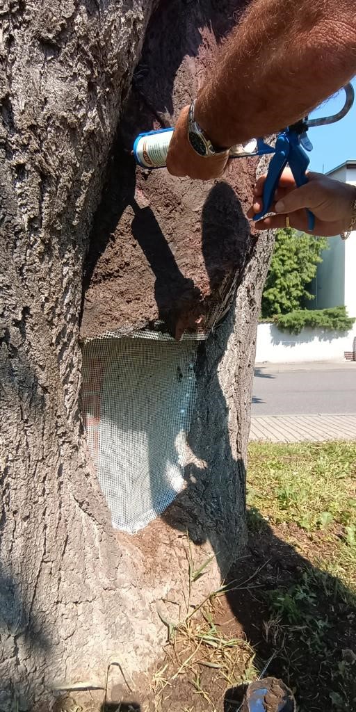 Zakrývání dutiny u lípy v ulici U Cukrovaru