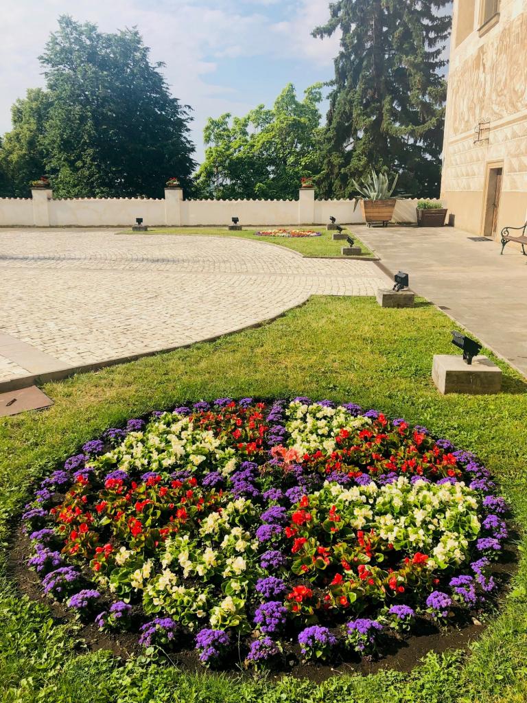 Květinový záhon na nádvoří zámku