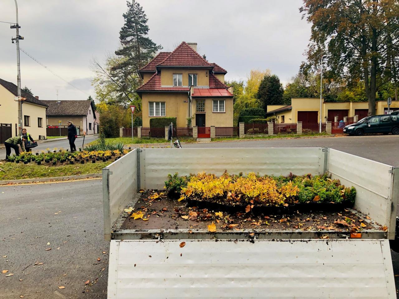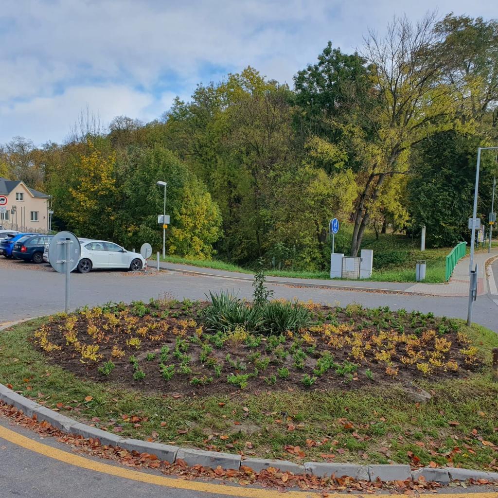 Nová výsadba zeleně v ostrůvku v městské části Obodř