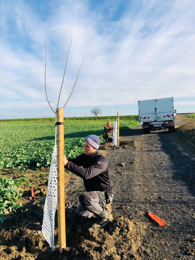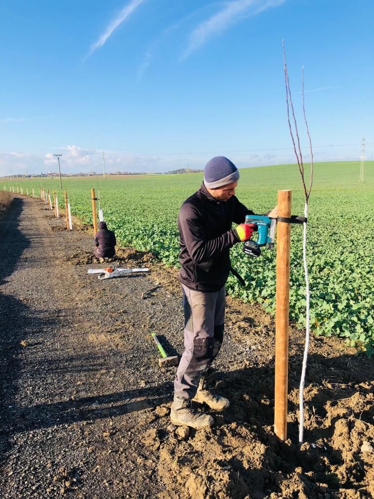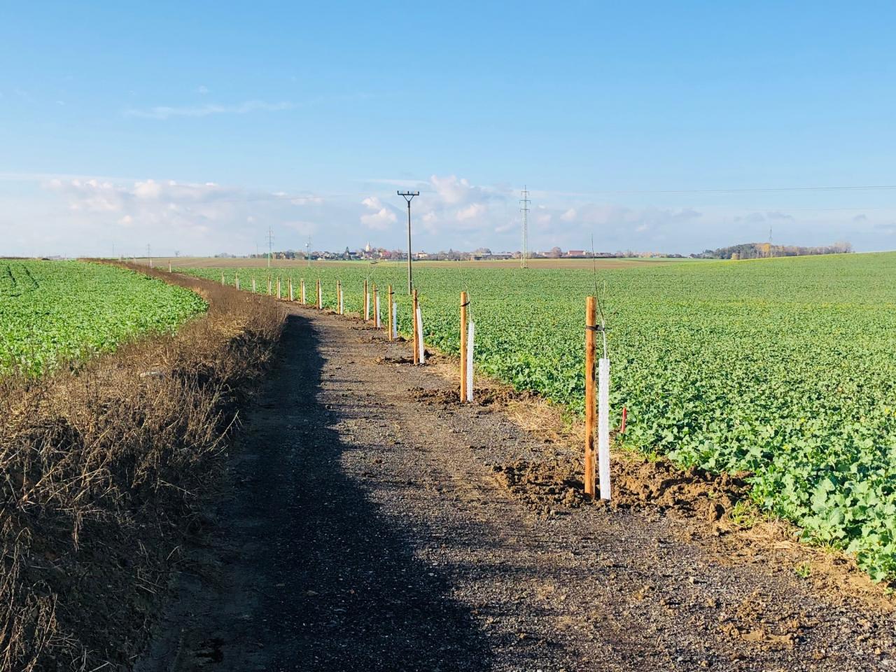 Obnovená polní cesta doplněná o výsadbu 53 k ovocných stromů.