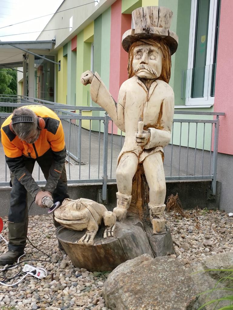 Údržba dřevěných soch v podzámeckém parku