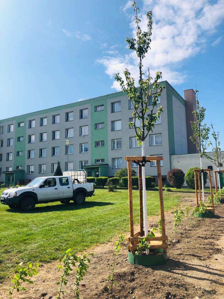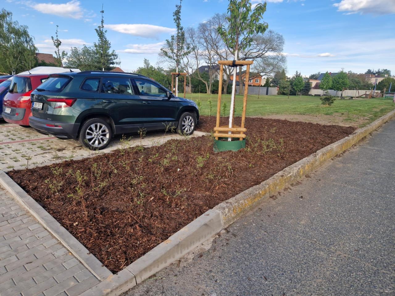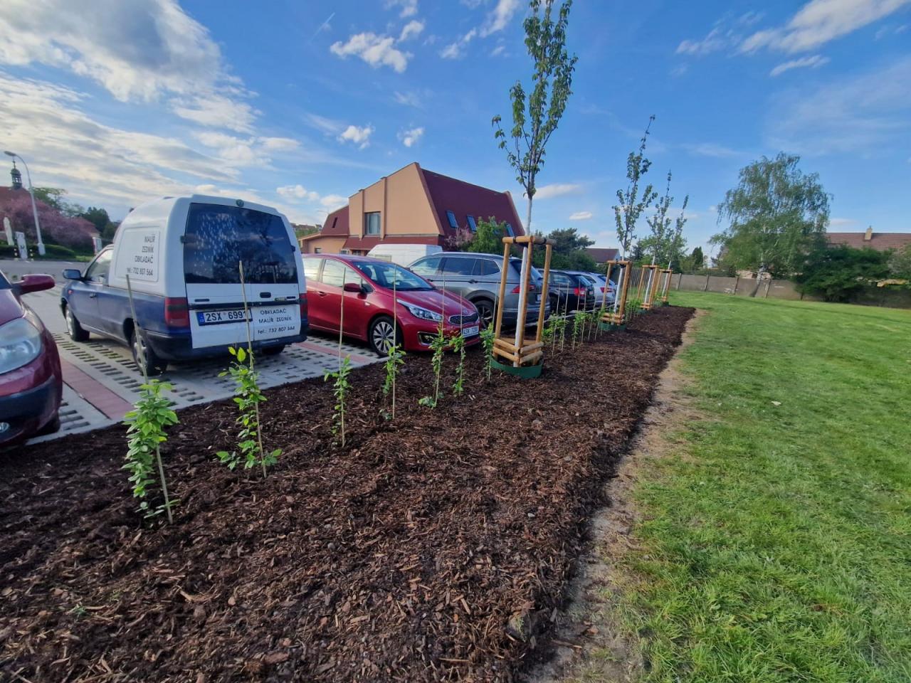 Výsadba podél parkovací plochy, ulice Mladská
